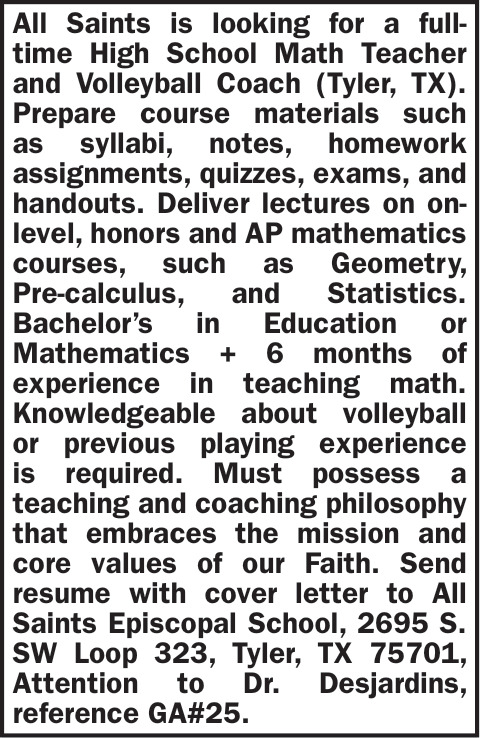 Oct 02, 2025. All Saints Episcopal School Jobs from Tyler Morning Telegraph
