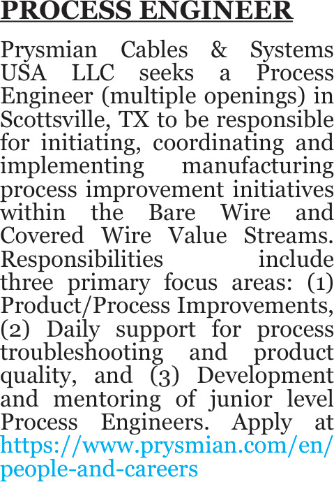Dec 14, 2025. Prysmian Cables & Systems USA LLC Jobs from Marshall News Messenger