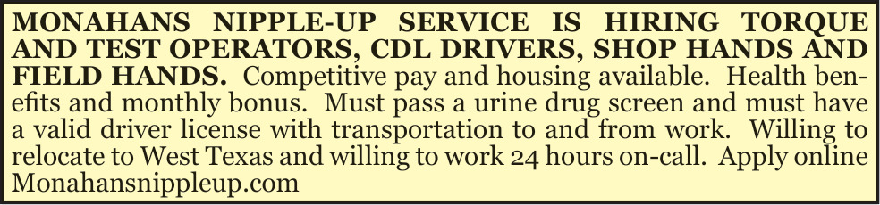 Apr 12, 2026. Monahans Nipple-Up Service Jobs from Longview News-Journal
