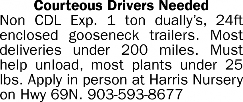 Jan 12, 2022. Harris Nursery Jobs from Tyler Morning Telegraph