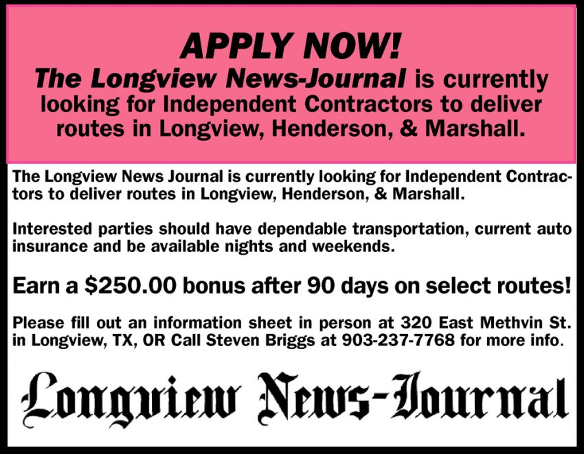 Jul 01, 2022. Longview News-Journal Jobs from Longview News-Journal